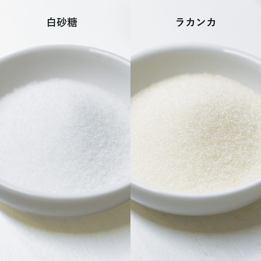 とうもろこし由来の甘味料エリスリトールとブレンドすることで、砂糖と同じ甘さに調整いたしました。 そのため砂糖の使用量と変わりませんので、使用しやすいのが特徴です。 また、砂糖同様サラッと溶けます。